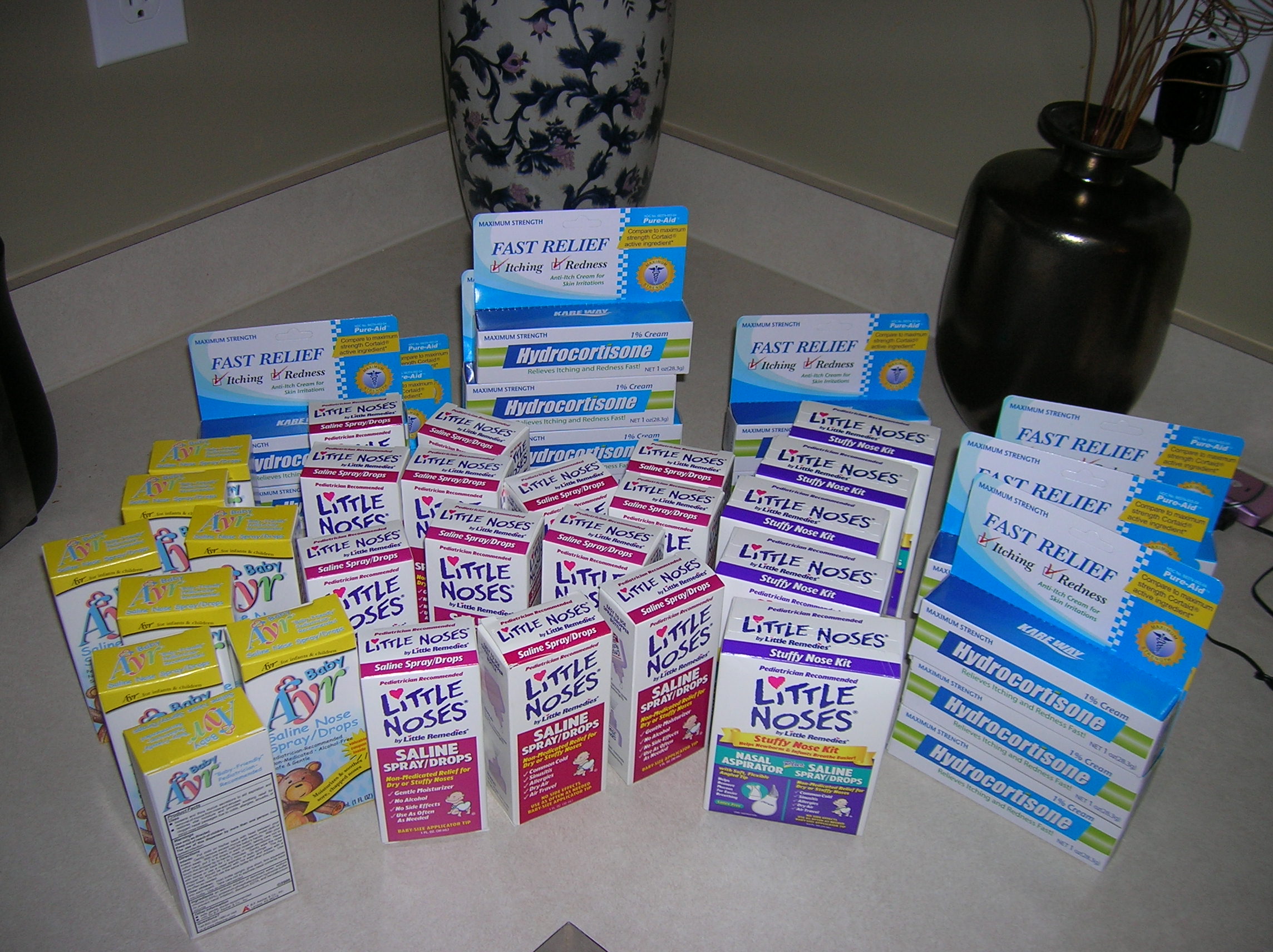 Per Jerry McGuire… Our business had a very good day! This week I was able to take the earnings from EBay that Emma and I are involved in and was able to purchase our first batch of medical supplies for my Haiti trip coming up in May. Rite Aid had a BOGO sale on children’s Saline and Big Lots had a sale (thanks Courtney!) on Hydrocortizone Cream. So here is the loot I picked up. Emma and I purchased it together. I think it’s one of the more fulfilling purchases I’ve made in a while! I currently have 5 items on eBay that are in auction mode right now so we’ll see what happens with those items this weekend.