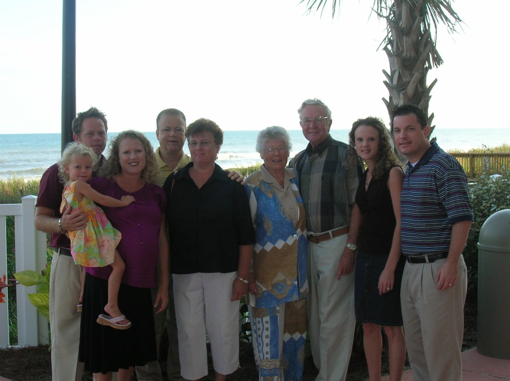 Here is a picture from our first year at the beach in 2006.  I was major prego at the time…oh my!  But look at this clan.  We have a lot of fun together.