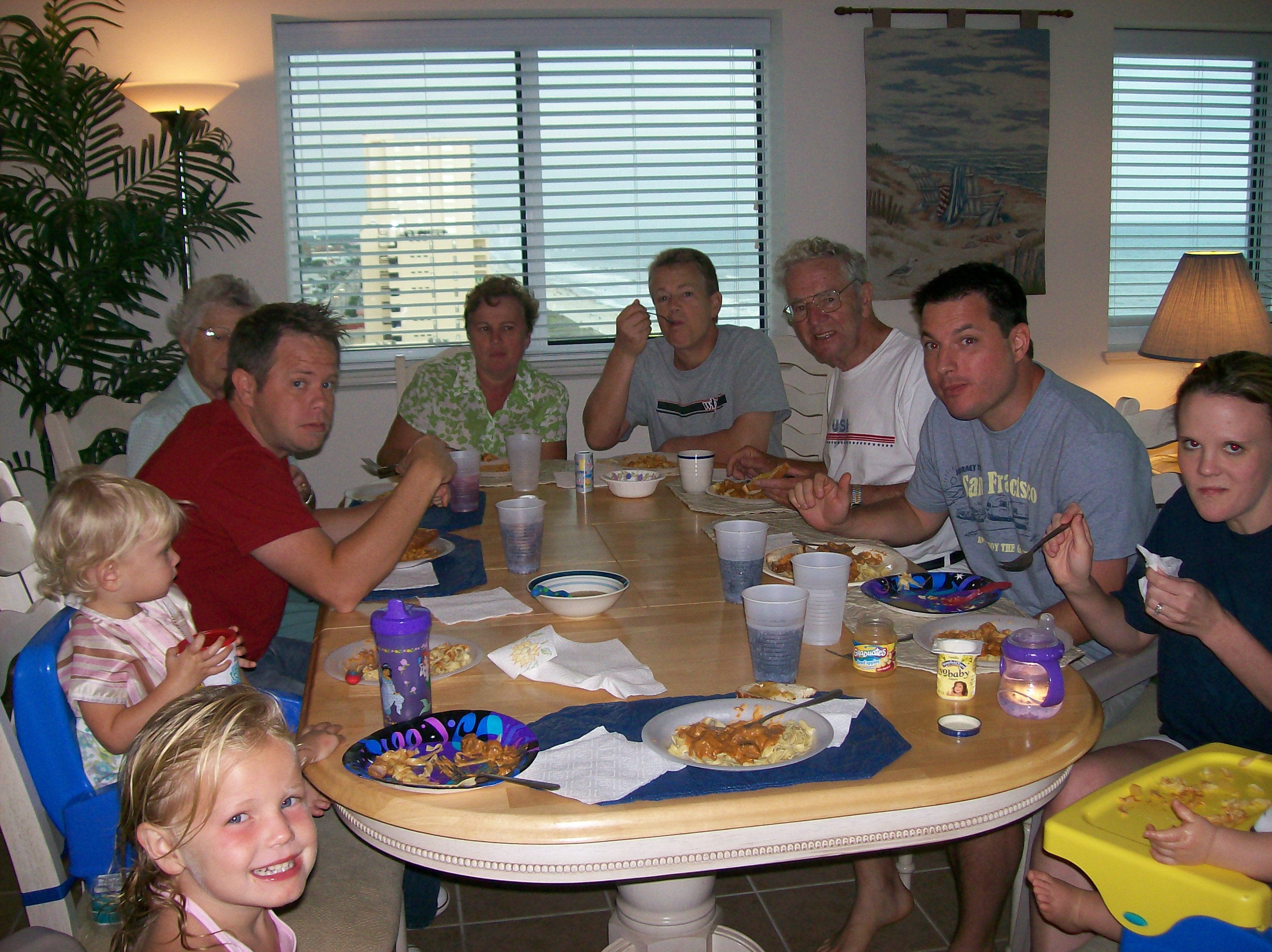 Dinner with the family. The best part of being here this week is that we are all here together with all of the Rhodes/Great Nana made home made beef strugenough (totally mis-spelled that one).. Yummy in my tummy!