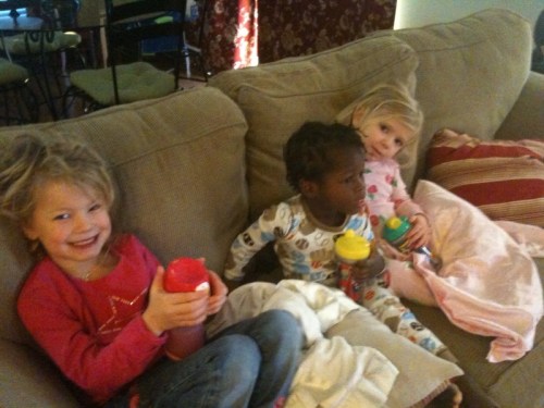 I will say this. Dave and I are AMAZED at how easy the transition has been so far these past four days. For both Frankie who seems to not have missed a beat and for our girls who have been truly amazing in accepting him. I think Dave and I did a good job of keeping them a part of this whole process from Day 1. For the past year and a half we have literally talked about Frankie every day. And now that he is physically here, I think the girls just truly feel it’s normal like any other day. He’s their brother. He’s been their brother for a long time. Now it’s just that he is physically here.