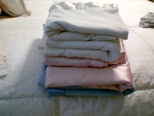 Just folded these up this morning. All my children and now even Frankie get tucked in bed each night with these and they walk down the stairs each morning with them. For Emma it’s been 7 years, Izzie three and Frankie a few weeks. I was a blanket person. I think I even went off to college with one stashed in my bag somewhere. Don’t worry… you won’t find it in my bed with Dave right now but I do have them stashed away in my hope chest… I had 4 of them. My mom decided to have 3 back ups and then I found them and thus I walked around with 4. My children never took a pacifier. They just wanted the comfort of a blanket. I was smart and bought 2 of each for the girls when they were born so I could trade them out. Then one day they each on their own time found out there were 2 and so now it’s 2 of each that get carted around the house when comfort is needed.