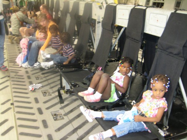 I remember those few weeks as a fog. Always on email and Facebook. Heartbroken by news of the devastation and internally conflicted of wanting my son home now. And then the news came. They are on a military plane heading to Orlando. (Frankie is the first boy in stripes)