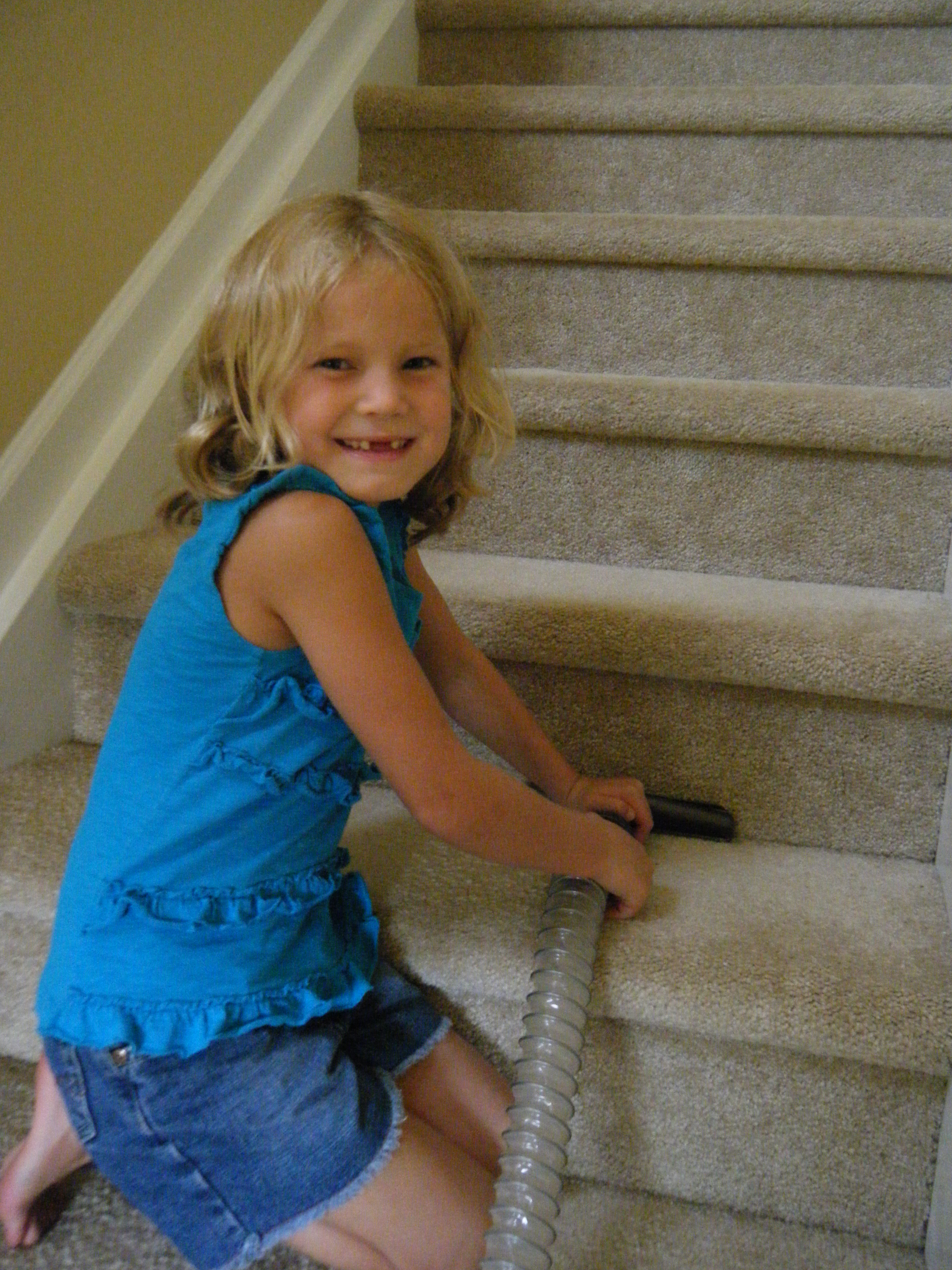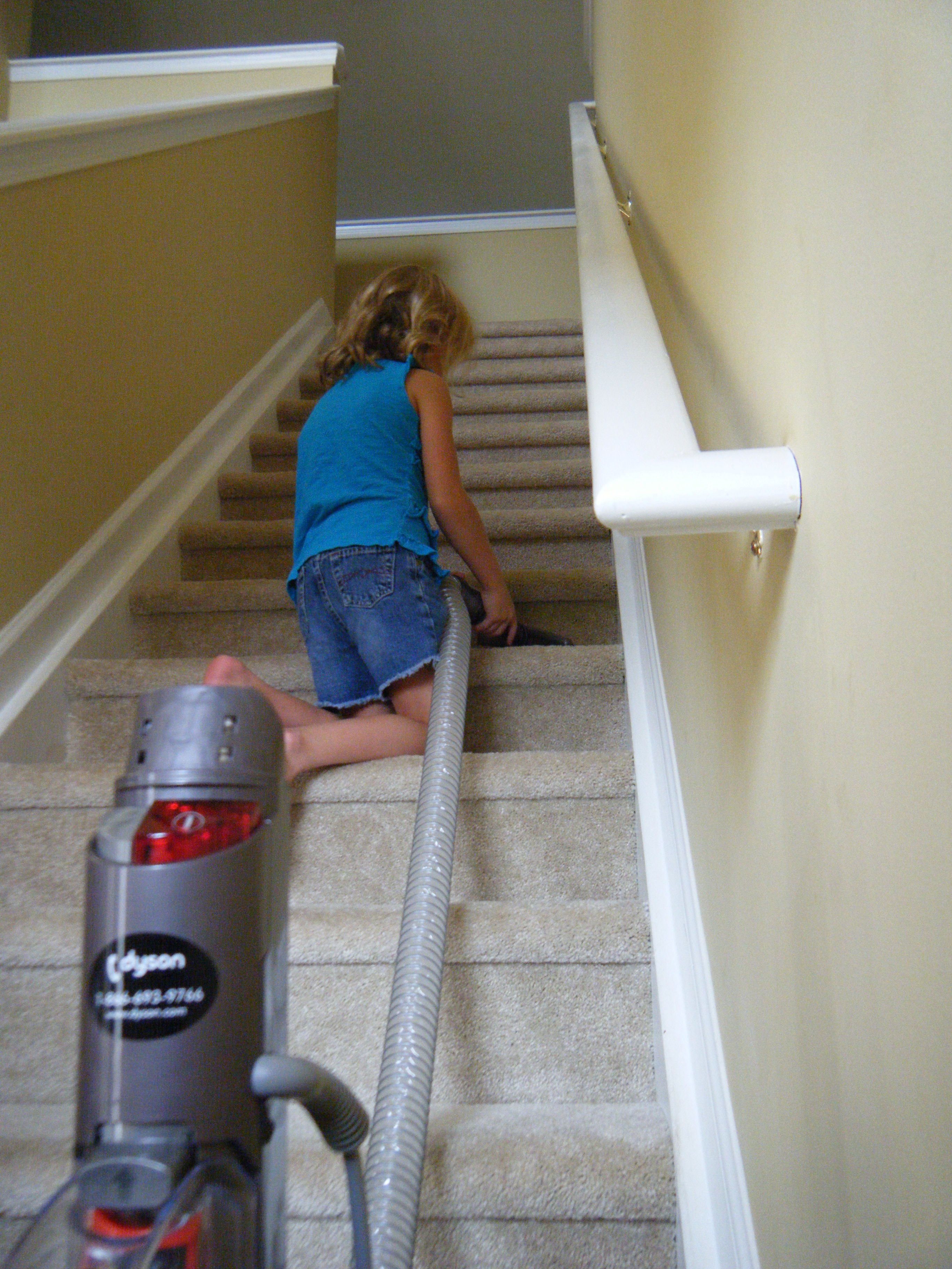 What could this be? My child on her own wanting to vacuum the stairs of all things? How on earth did I ever raise such wonderful human beings? And yes, she loved it. I grabbed my camera to record the historic moment.