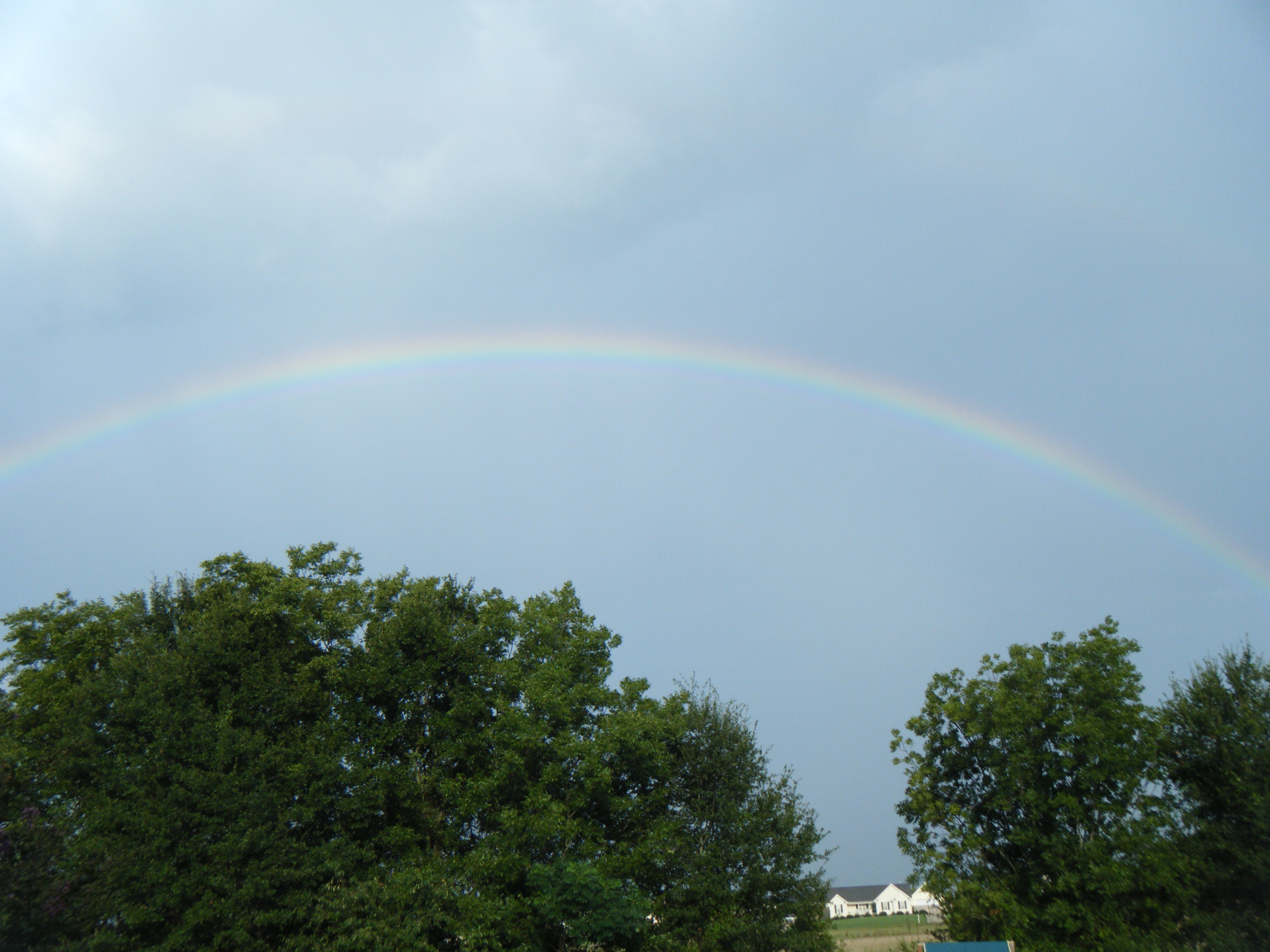 I love Rainbows. For me they are the constant reminder of God’s promises. Sunday we had an amazing one outside our back door. I had just jumped on the lawn mower (to help Dave out) as he was glued to the Golf happening on TV. The sun was shining and just as I began to mow a light refreshing rain started to fall. The song Healing rain began to come to mind and I started humming. Then I looked to the sky and saw this beautiful rainbow. God’s promise for many things for my life. I had to run back inside and show the kids but before I did I soaked up the moment for all it was worth and was overwhelmed with his presence and peace in my life…..