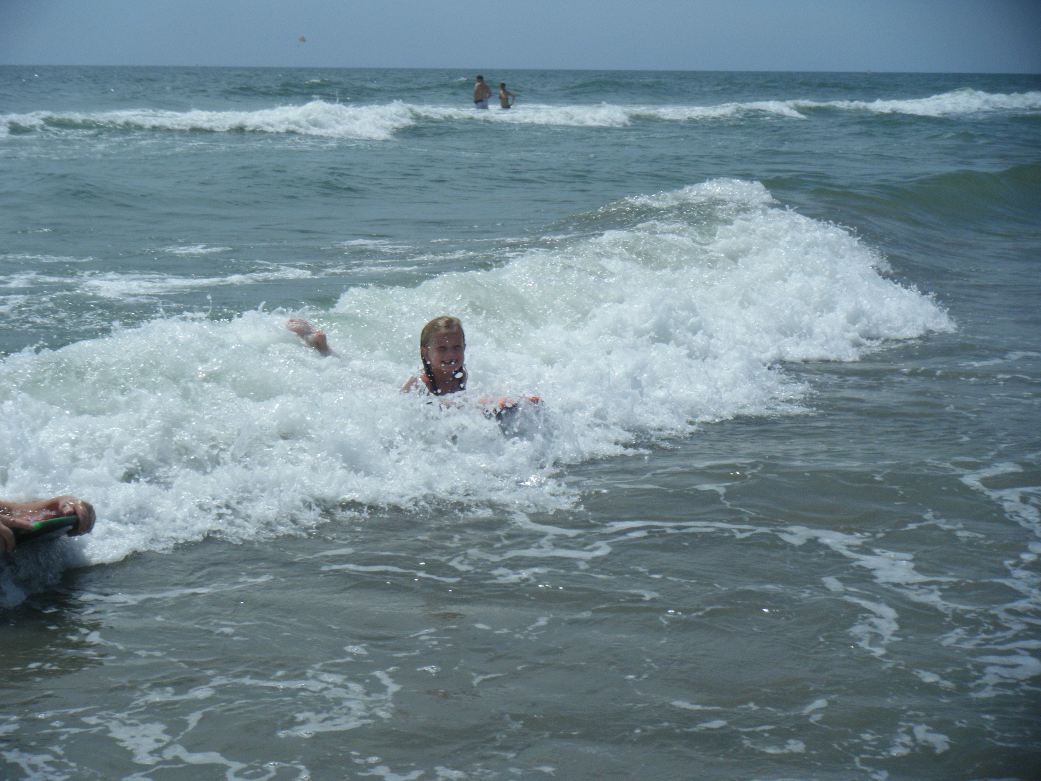 The beach yesterday was amazing. Best in 5 years I think. We purchased Emma a board for 2.99. It’s her first time since really knowing how to swim that she’s out and riding the waves. SHE LOVES IT! I even went in with her (not something I really do) The kids spent hours just playing and playing and playing.
